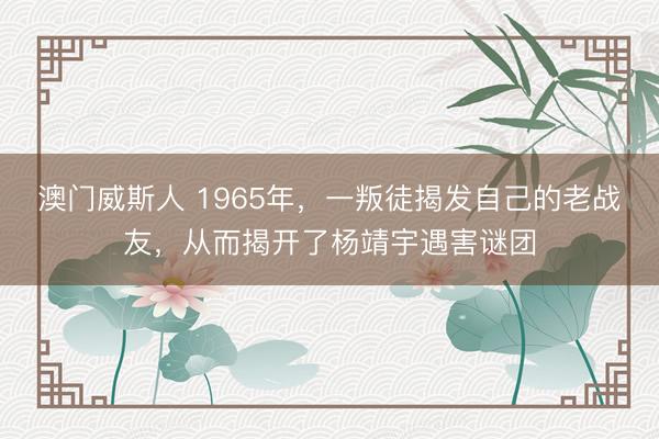澳门威斯人 1965年,一叛徒揭发自己的老战友,从而揭开了杨