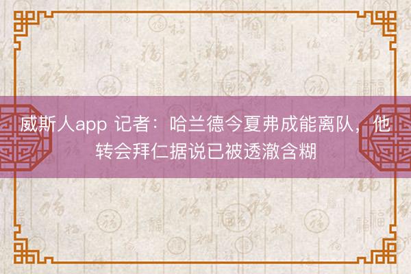 威斯人app 记者:哈兰德今夏弗成能离队,他转会拜仁据说已被