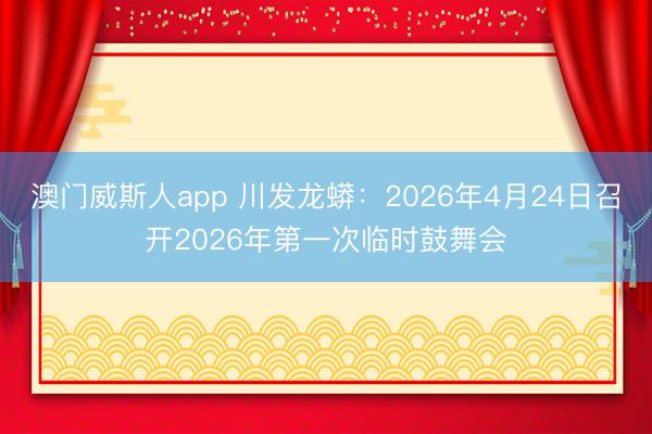 澳门威斯人app 川发龙蟒:2026年4月24日召开2026