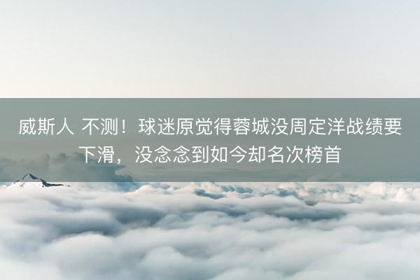 威斯人 不测!球迷原觉得蓉城没周定洋战绩要下滑,没念念到如今