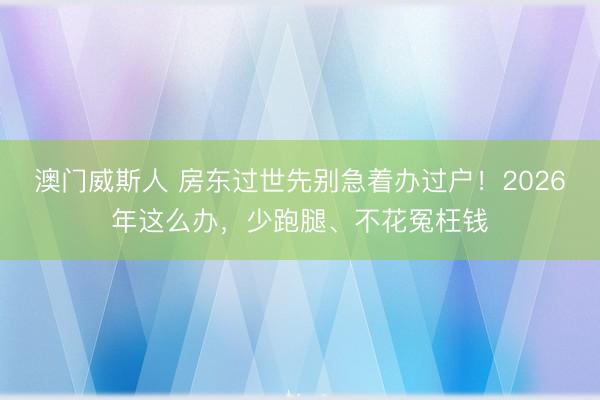 澳门威斯人 房东过世先别急着办过户!2026年这么办,少跑腿