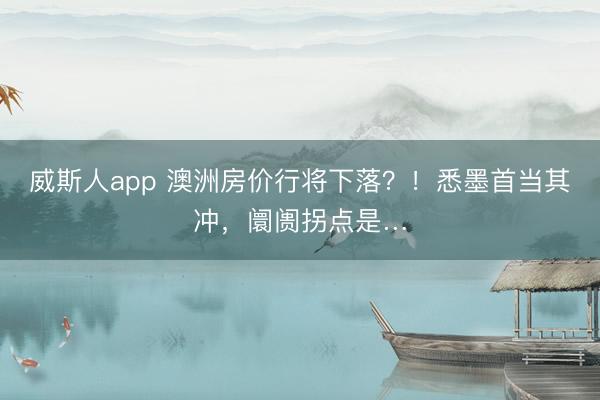威斯人app 澳洲房价行将下落?!悉墨首当其冲,阛阓拐点是…