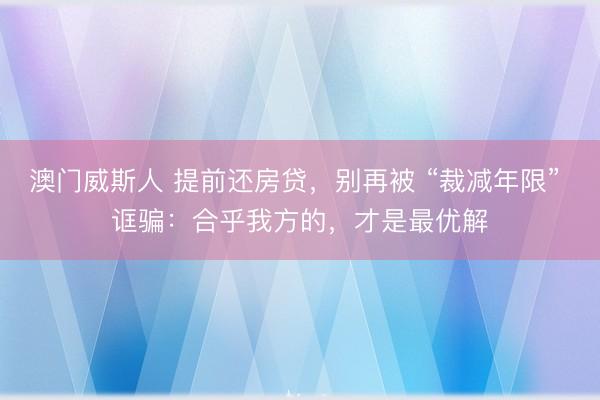 澳门威斯人 提前还房贷,别再被 “裁减年限” 诓骗:合乎我方