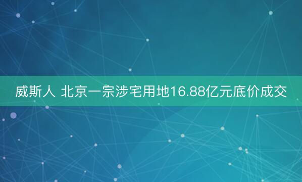 威斯人 北京一宗涉宅用地16.88亿元底价成交