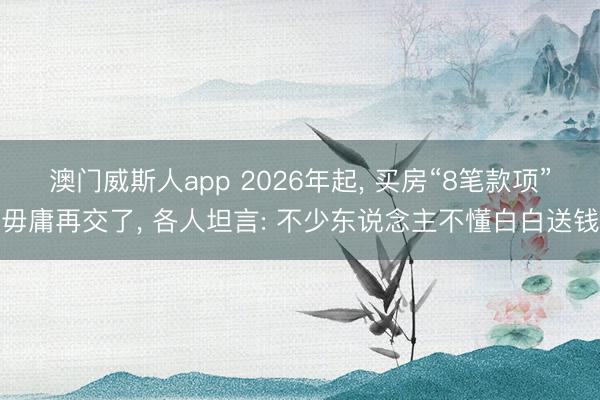 澳门威斯人app 2026年起, 买房“8笔款项”毋庸再交了
