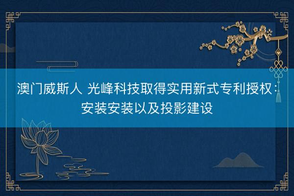 澳门威斯人 光峰科技取得实用新式专利授权:安装安装以及投影建