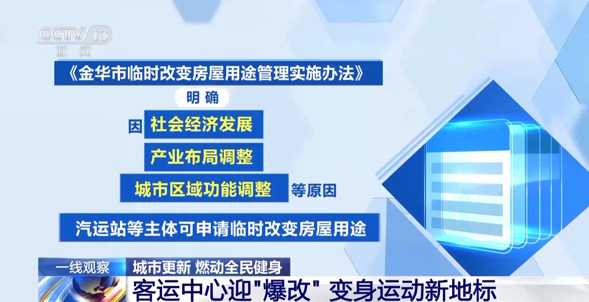 为破解城市更新中业态转型难题,金华市出台了临时改变房屋用途搞定实施目的,明确因社会经济发展、产业布局调治、城市区域功能调治等原因,汽运站等主体可央求临时改变房屋用途。金华市汽车南站也成为首批受益的城市更新神色。