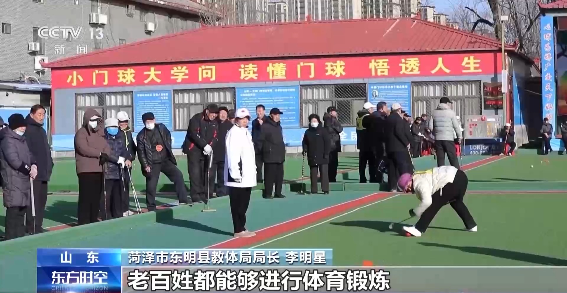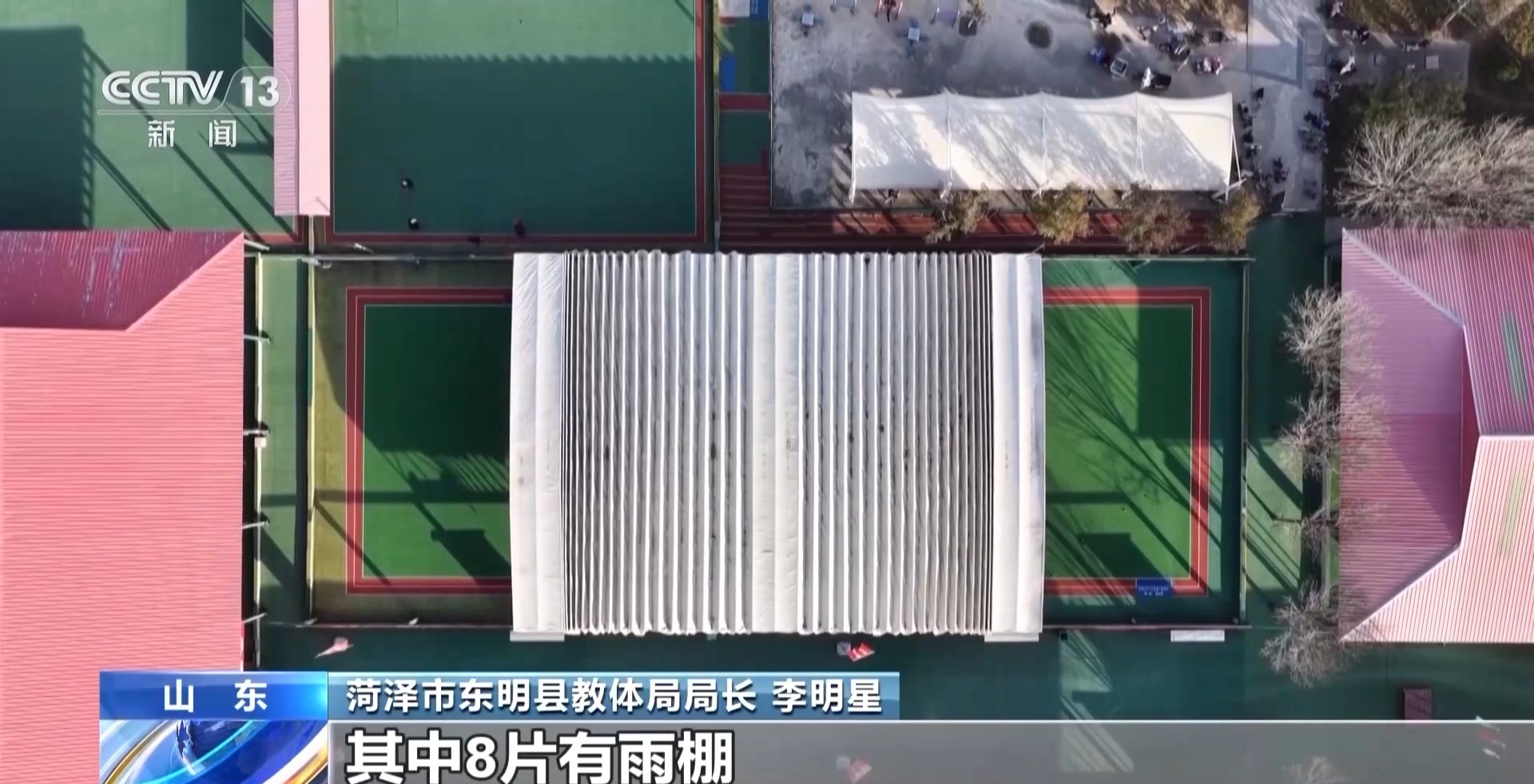 菏泽市东明县教体局局长 李明星:17片连在一齐的圭臬化门球场,其中8片有雨棚,下雨天、起风天,老庶民齐梗概进行体育训练。
