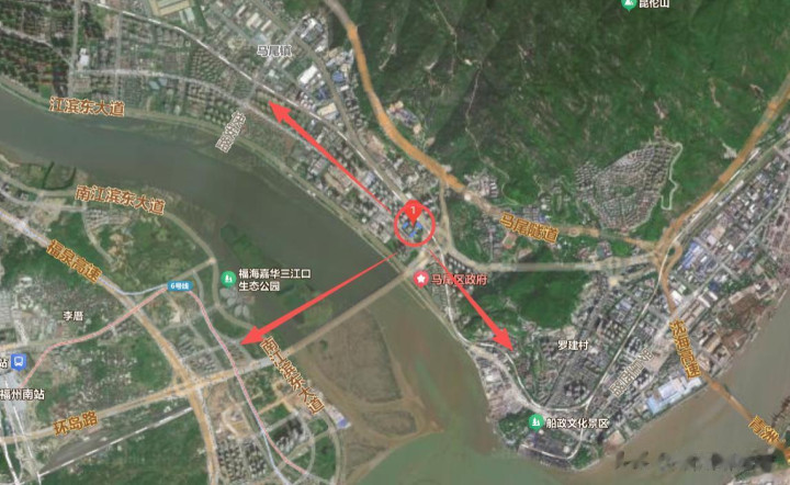隔着闽江,对岸即是仓山区的三江口,淌若从马尾老城区向南,则能放射到滨海新城。