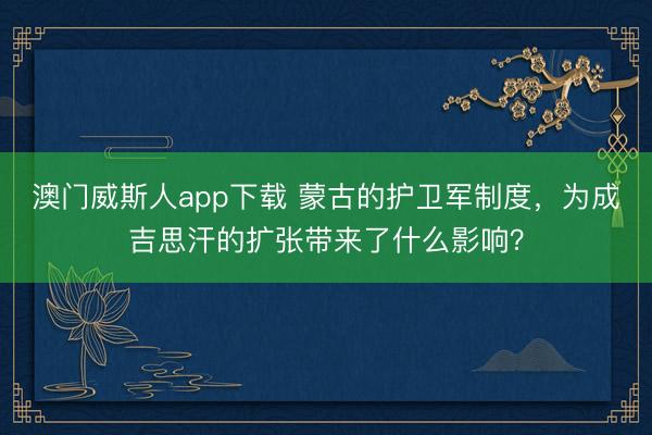 澳门威斯人app下载 蒙古的护卫军制度,为成吉思汗的扩张带来