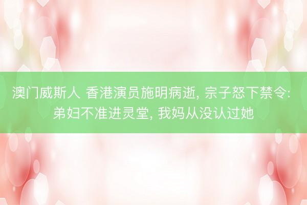 澳门威斯人 香港演员施明病逝, 宗子怒下禁令: 弟妇不准进灵