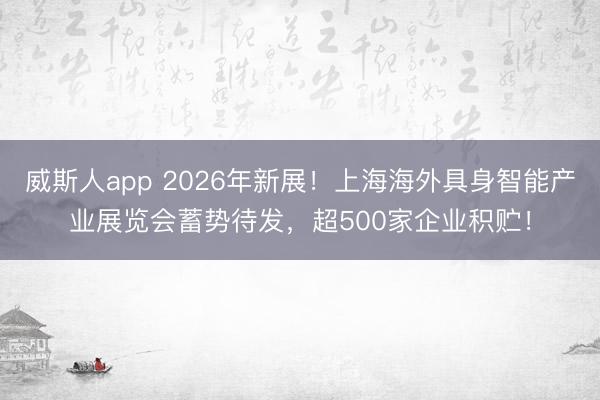 威斯人app 2026年新展!上海海外具身智能产业展览会蓄势