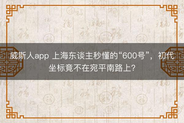 威斯人app 上海东谈主秒懂的“600号”,初代坐标竟不在宛